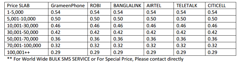 2. NON MASK SMS PRICE LIST :
